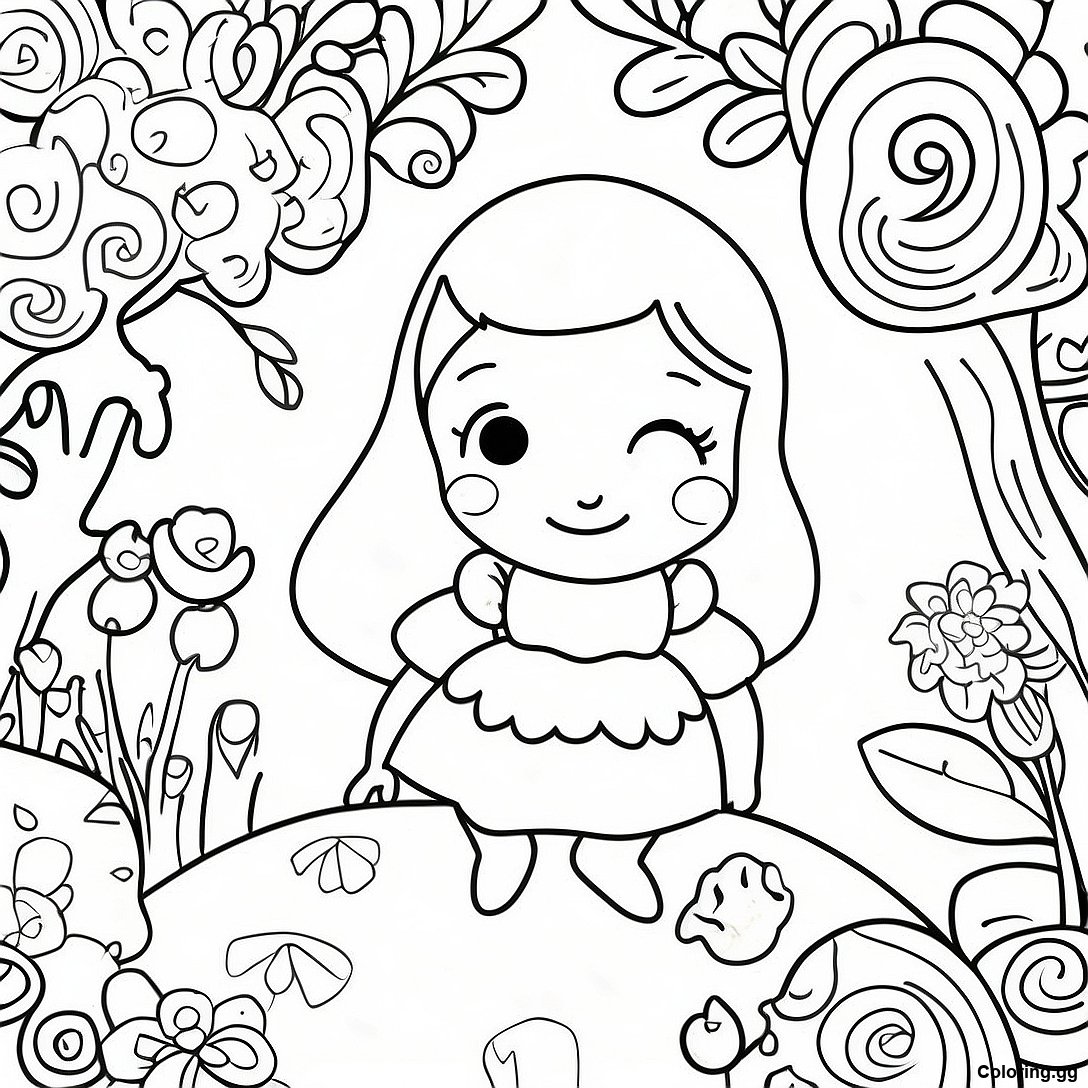 Download Printable PDF of Αλίκη Στη Χώρα Των Θαυμάτων Ανθισμένο Θαύμα Σελίδα Ζωγραφικής