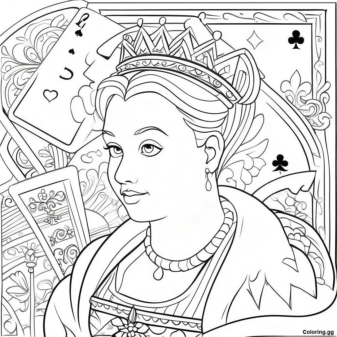 Βασίλισσα Των Καρδιών Παίζοντας Χαρτιά Σελίδα Ζωγραφικής