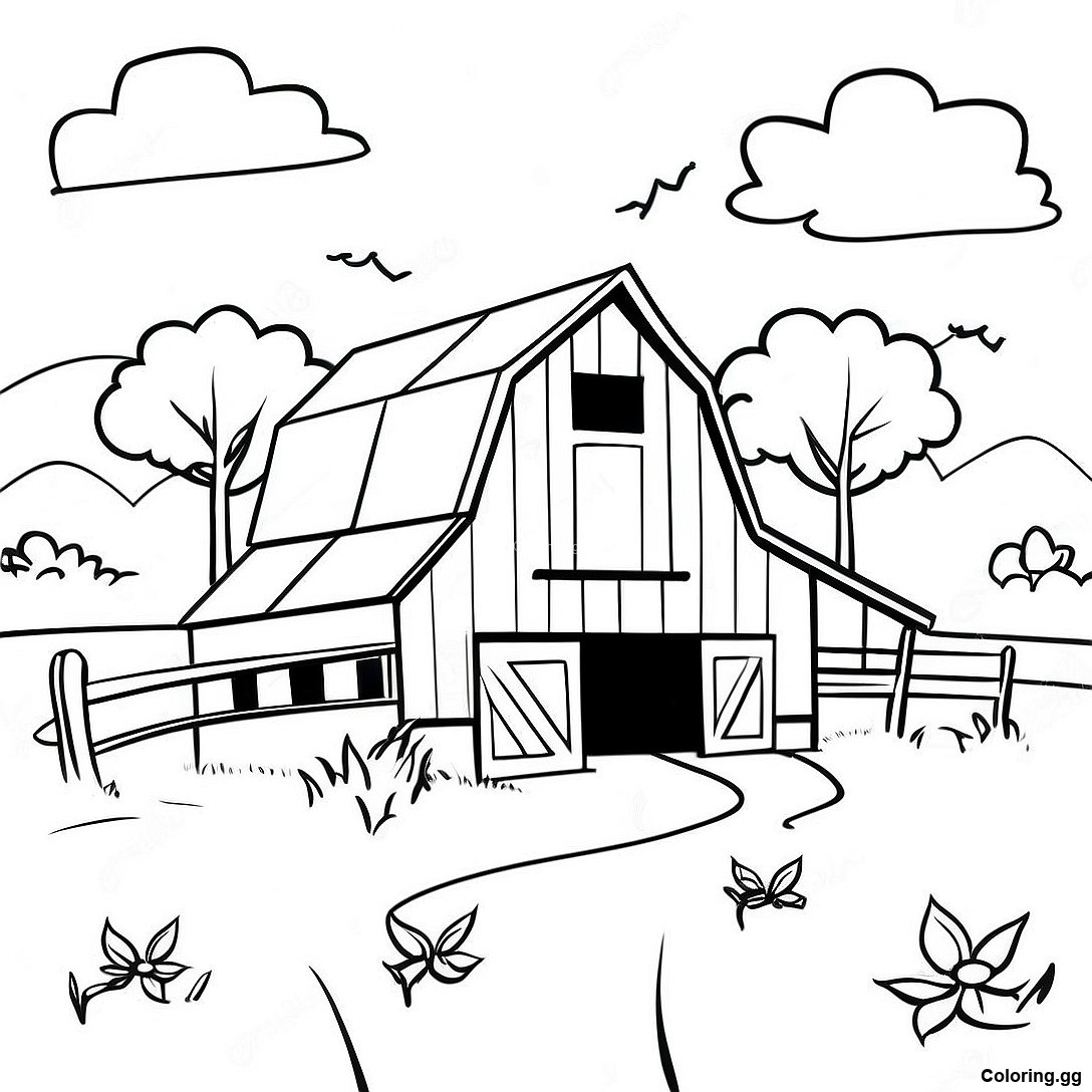 Download Printable PDF of Ηλιόλουπη Τοπιογραφία Στάβλου Σελίδα Ζωγραφικής
