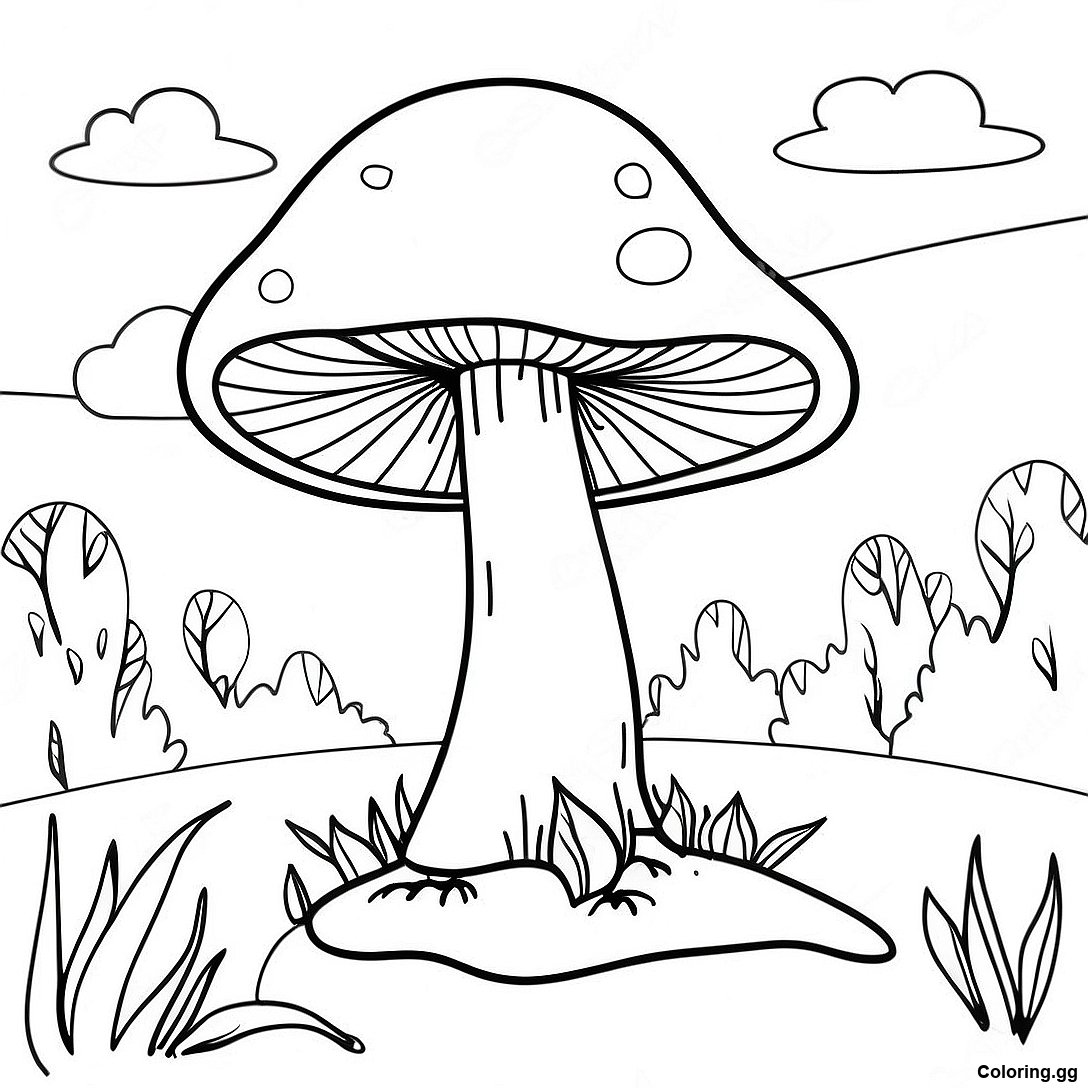 Download Printable PDF of Γιγαντιαίο Τοπίο Μανιταριών Σελίδα Ζωγραφικής