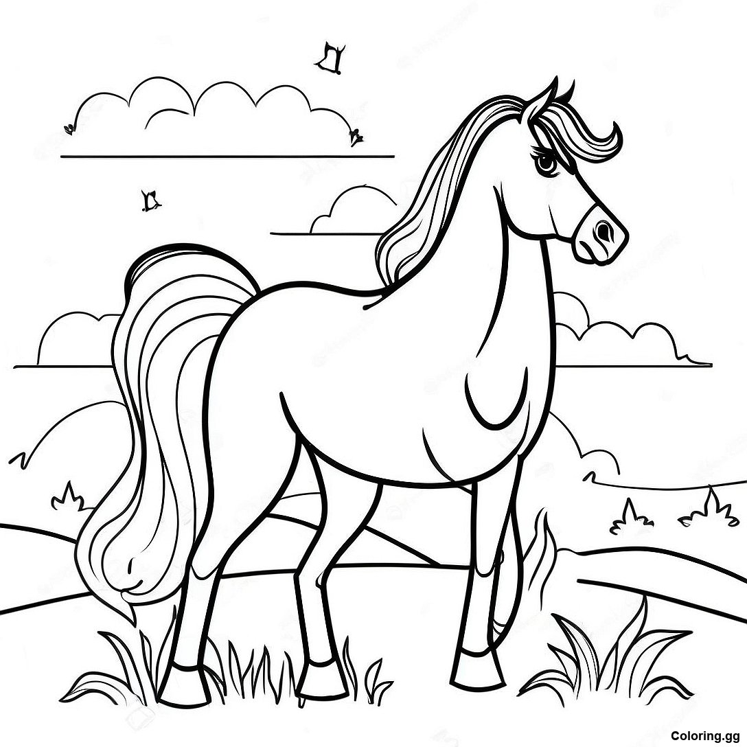 Download Printable PDF of Κομψός Ίππος Στη Δύση Του Ηλίου Σελίδα Ζωγραφικής