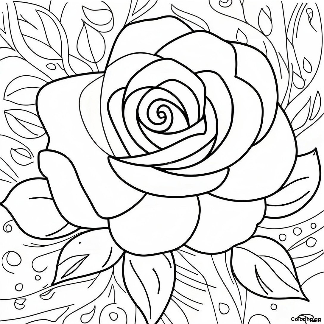 Ρεαλιστικό Λουλούδι Ρόζας Σε Σελίδα Ζωγραφικής