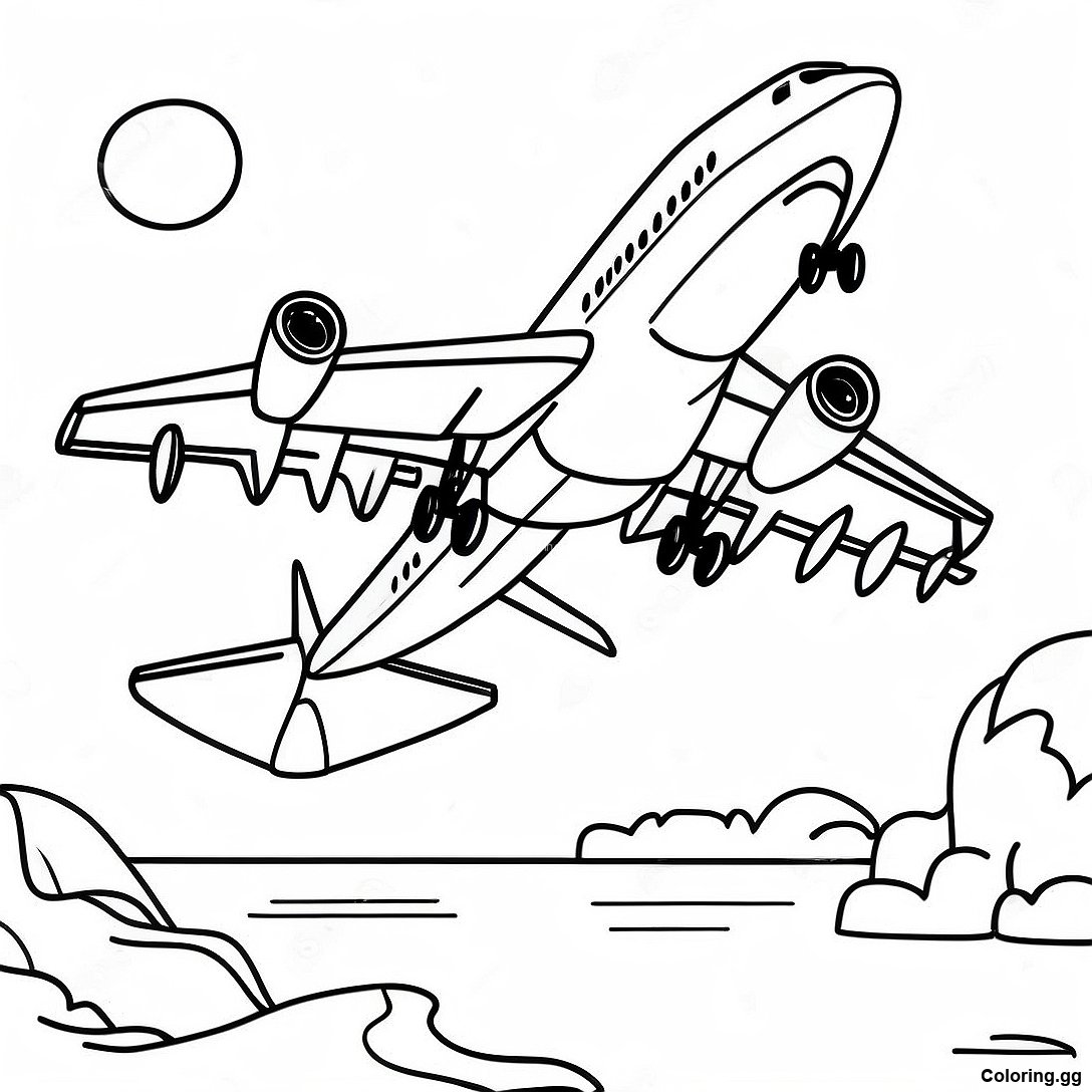 Αεροπλάνο Τζετ Απογειώνεται Σελίδα Ζωγραφικής