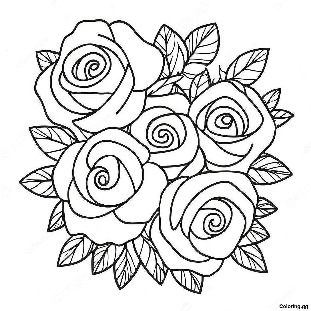 Σελίδα Ζωγραφικής Κομψού Μπουκέτου Ρόδων
