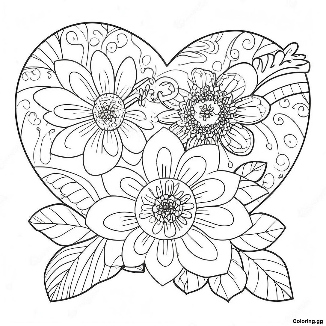 Σελίδα Ζωγραφικής Με Καρδιές Και Λουλούδια