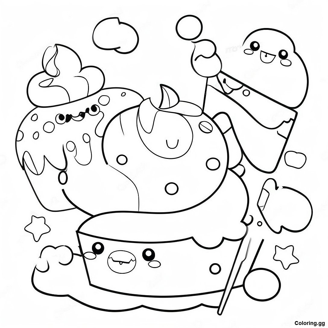 Download Printable PDF of Σελίδα Ζωγραφικής Με Χαριτωμένα Num Noms Με Cupcakes