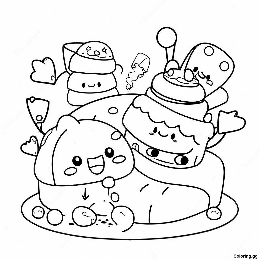 Σελίδα Ζωγραφικής Με Χαρούμενα Num Noms Που Παίζουν Μαζί