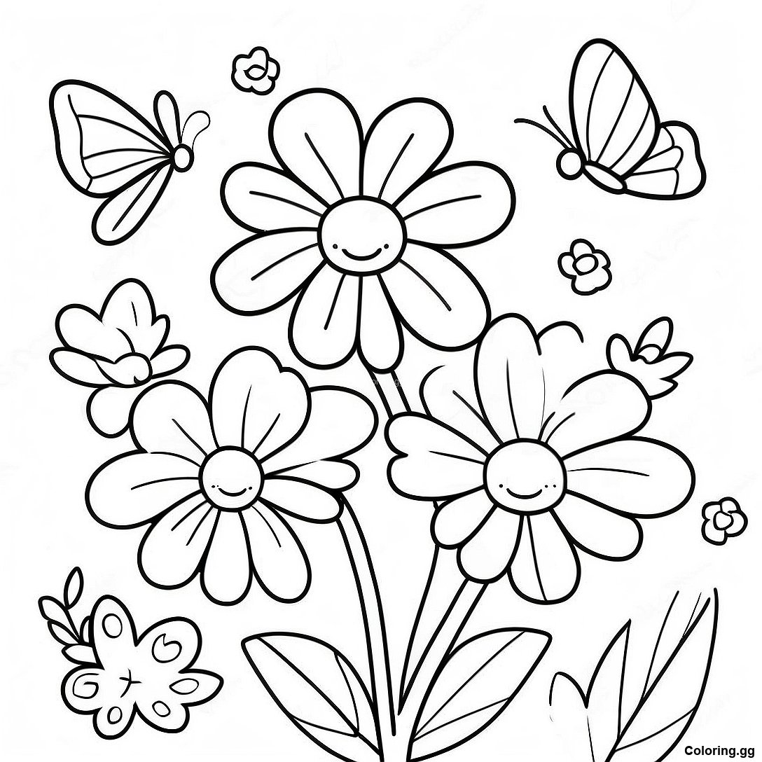 Σελίδα Ζωγραφικής Με Χαρούμενες Μαργαρίτες Και Πεταλούδες