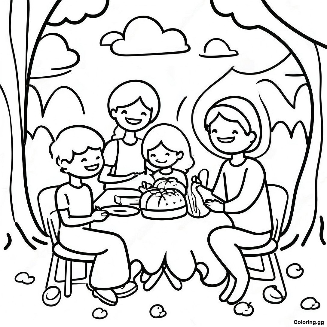 Σελίδα Ζωγραφικής Με Χαρούμενο Οικογενειακό Πικνίκ