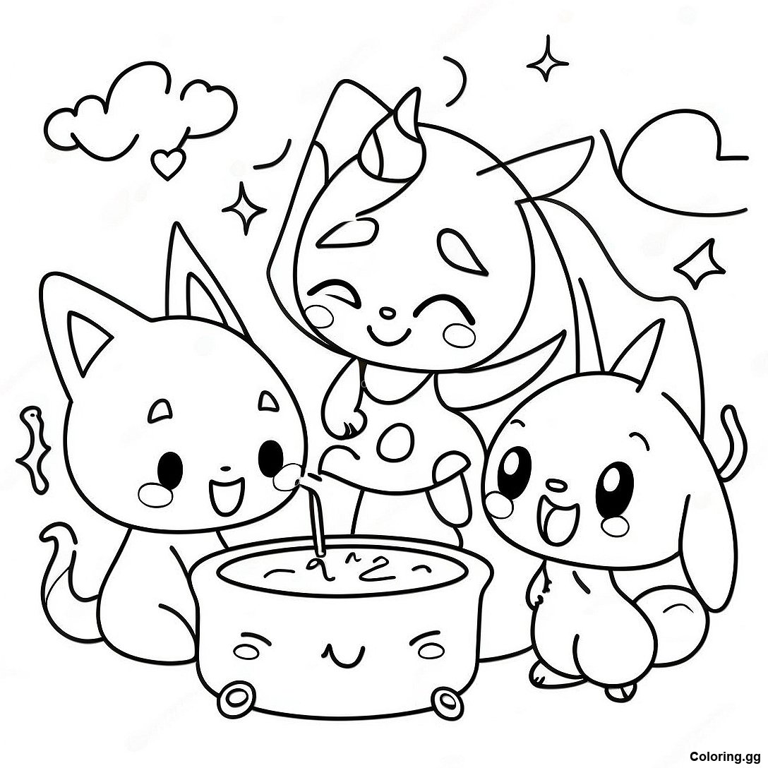 Download Printable PDF of Σελίδα Ζωγραφικής Με Την Κουρόμι Να Παίζει Με Φίλους