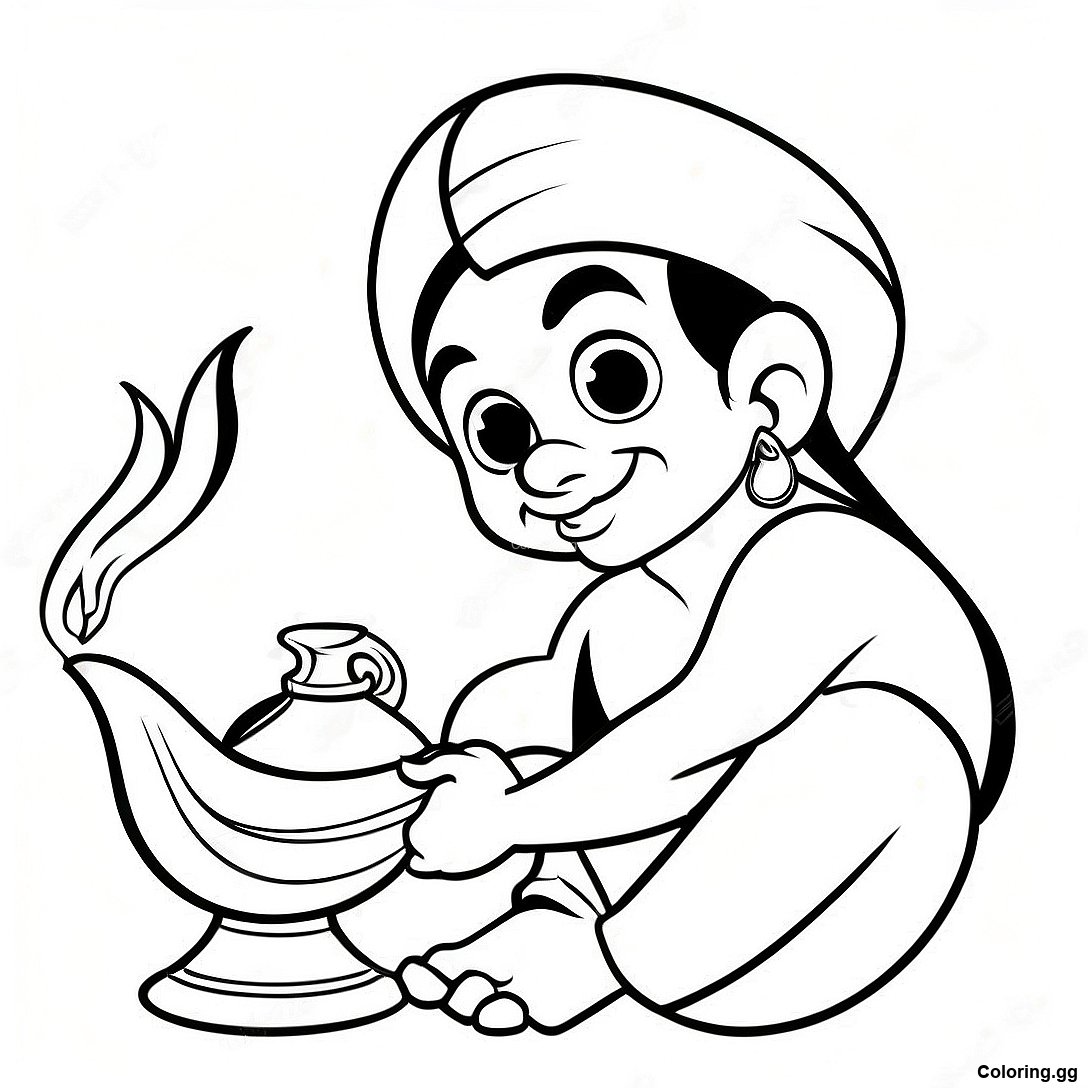 Σελίδα Ζωγραφικής Με Τον Αλαντίν Και Τη Μαγική Λάμπα