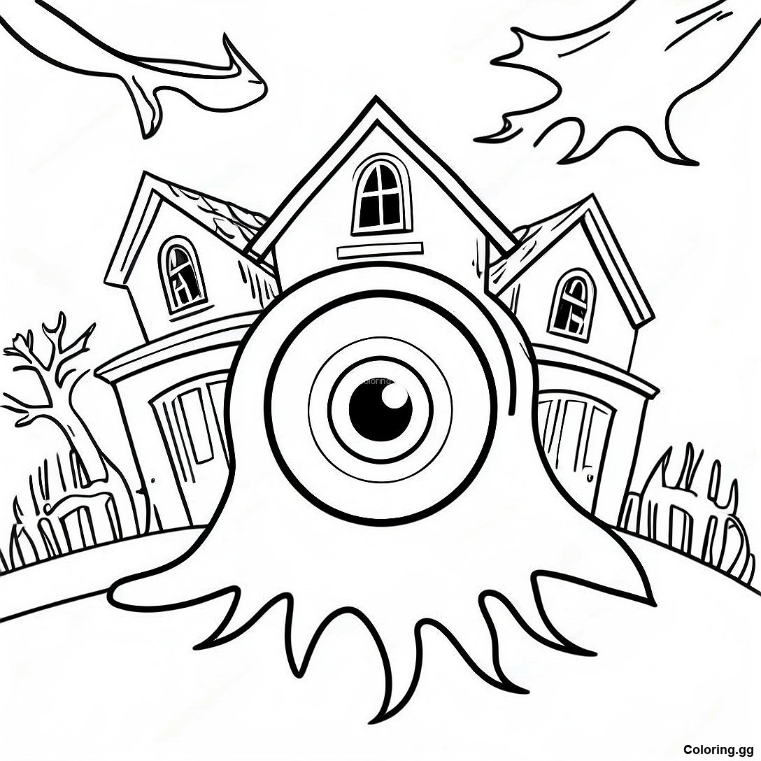 Σελίδα Ζωγραφικής Με Τρομακτικό Μάτι Σε Στοιχειωμένο Σπίτι