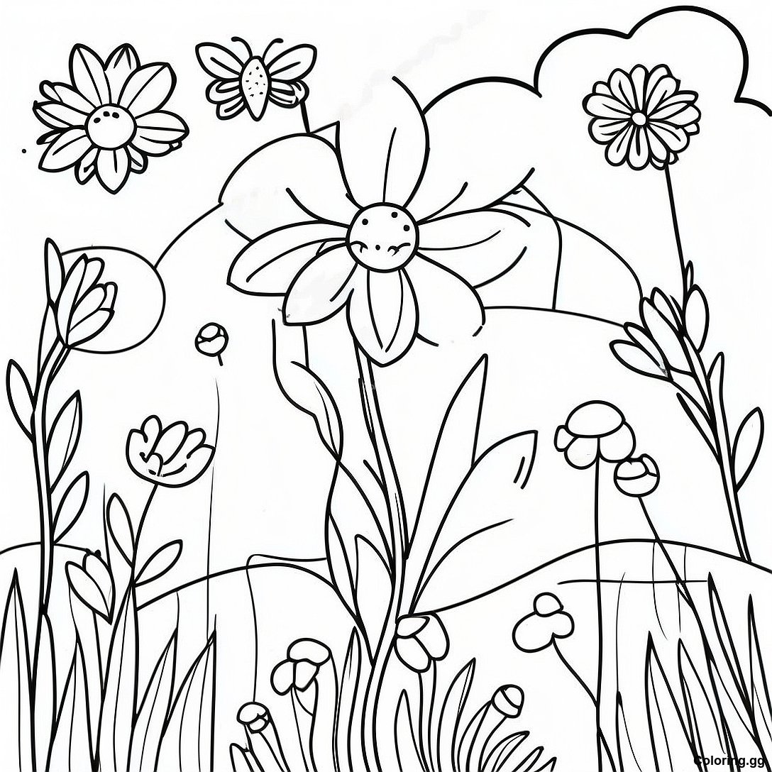 Σελίδα Ζωγραφικής Πολύχρωμου Λιβαδιού Άγριων Λουλουδιών