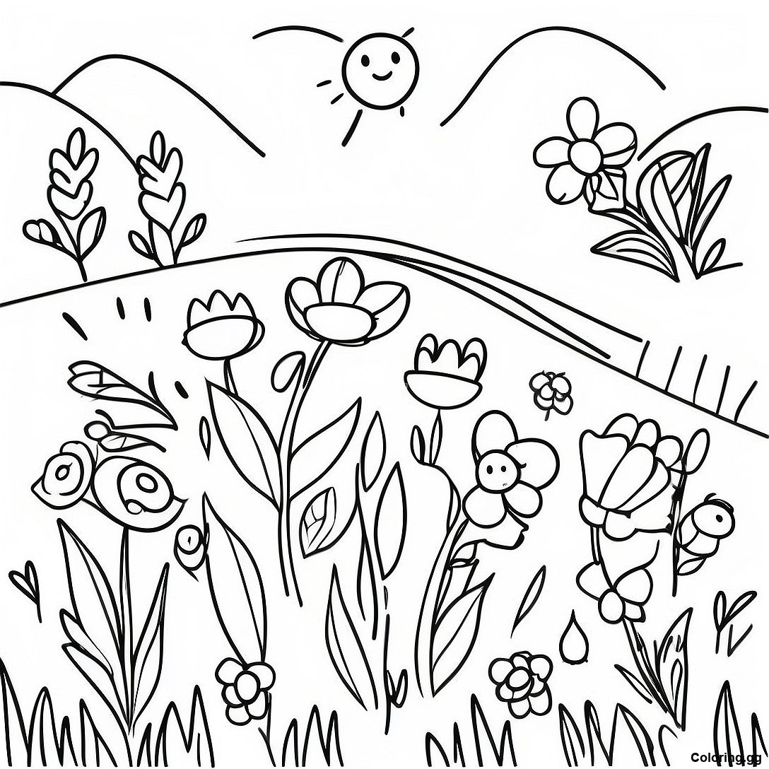 Σελίδα Ζωγραφικής Πολύχρωμου Λιβαδιού Άγριων Λουλουδιών