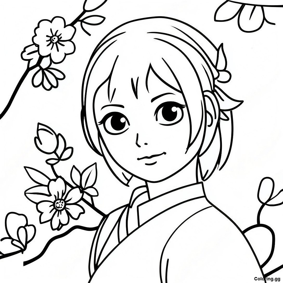 Download Printable PDF of Σελίδα Ζωγραφικής Sakura Haruno Με Ανθισμένα Κερασιές
