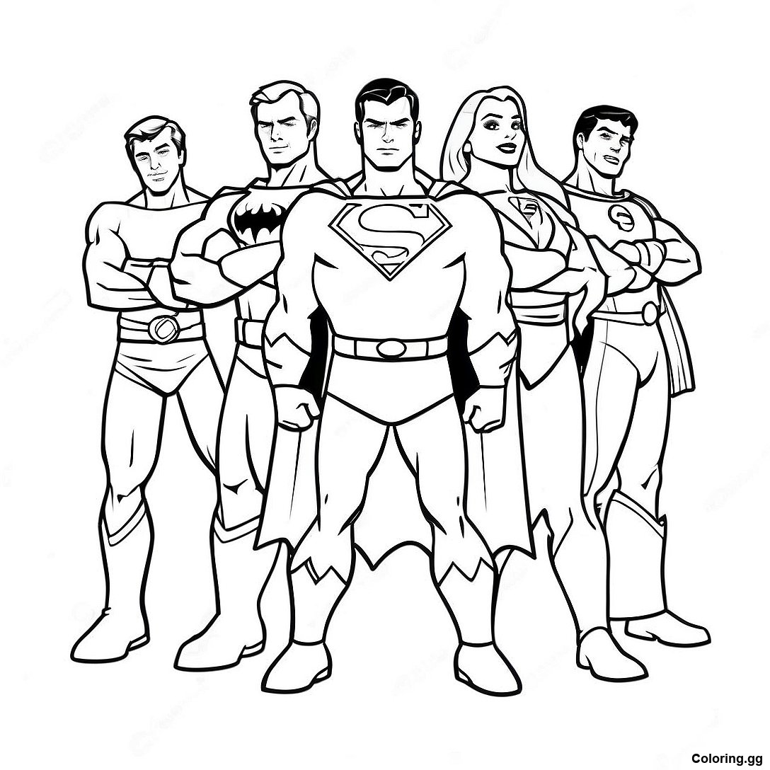 Χρωματιστή Ομάδα Σούπερ Ηρώων σε Δράση Σελίδα Ζωγραφικής