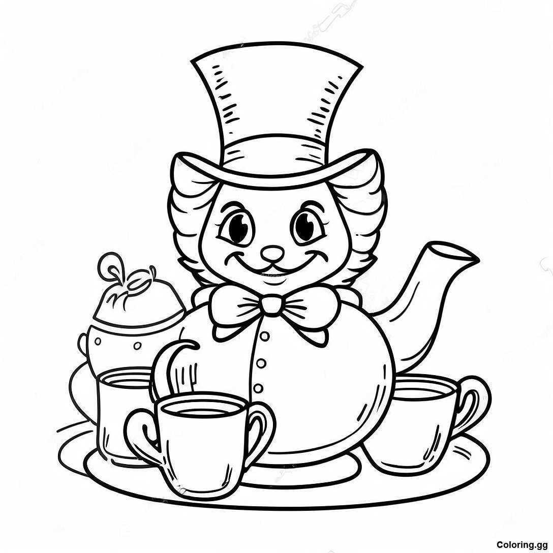 Download Printable PDF of Τρελός Καπελάς Πάρτι Τσαγιού Σελίδα Ζωγραφικής